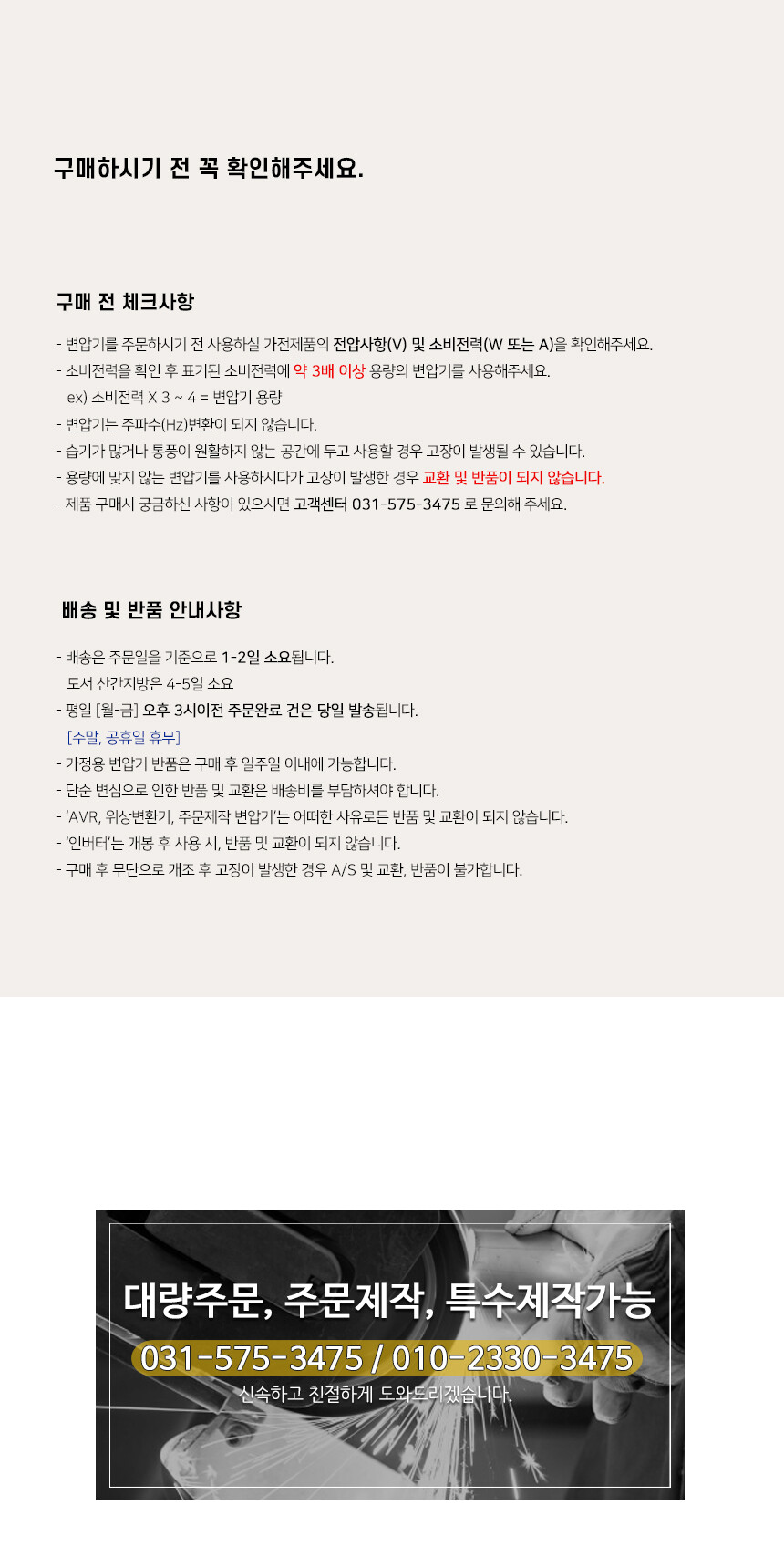 (모터전동기일 경우, 기동부하 전력의 최대치로 계산하여 용량을 선택하여 주십시오.)