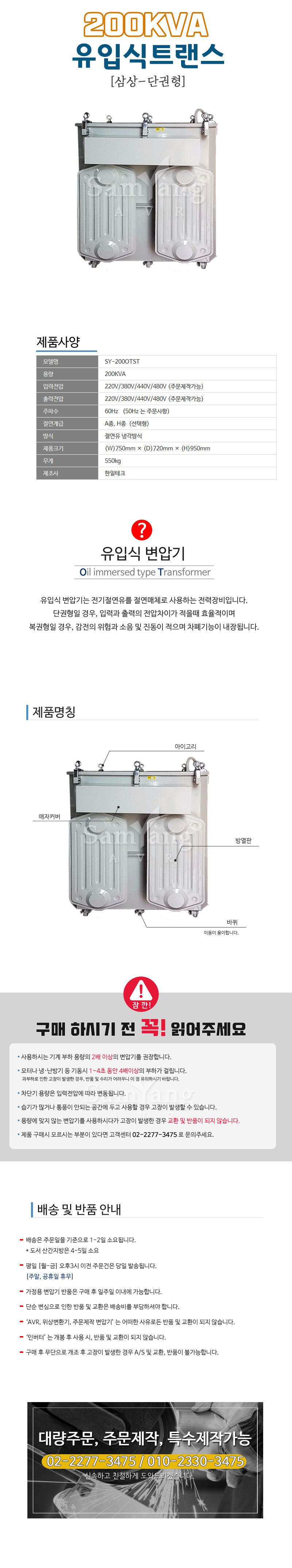 [공업용변압기]유입식 삼상-단권 200KVA