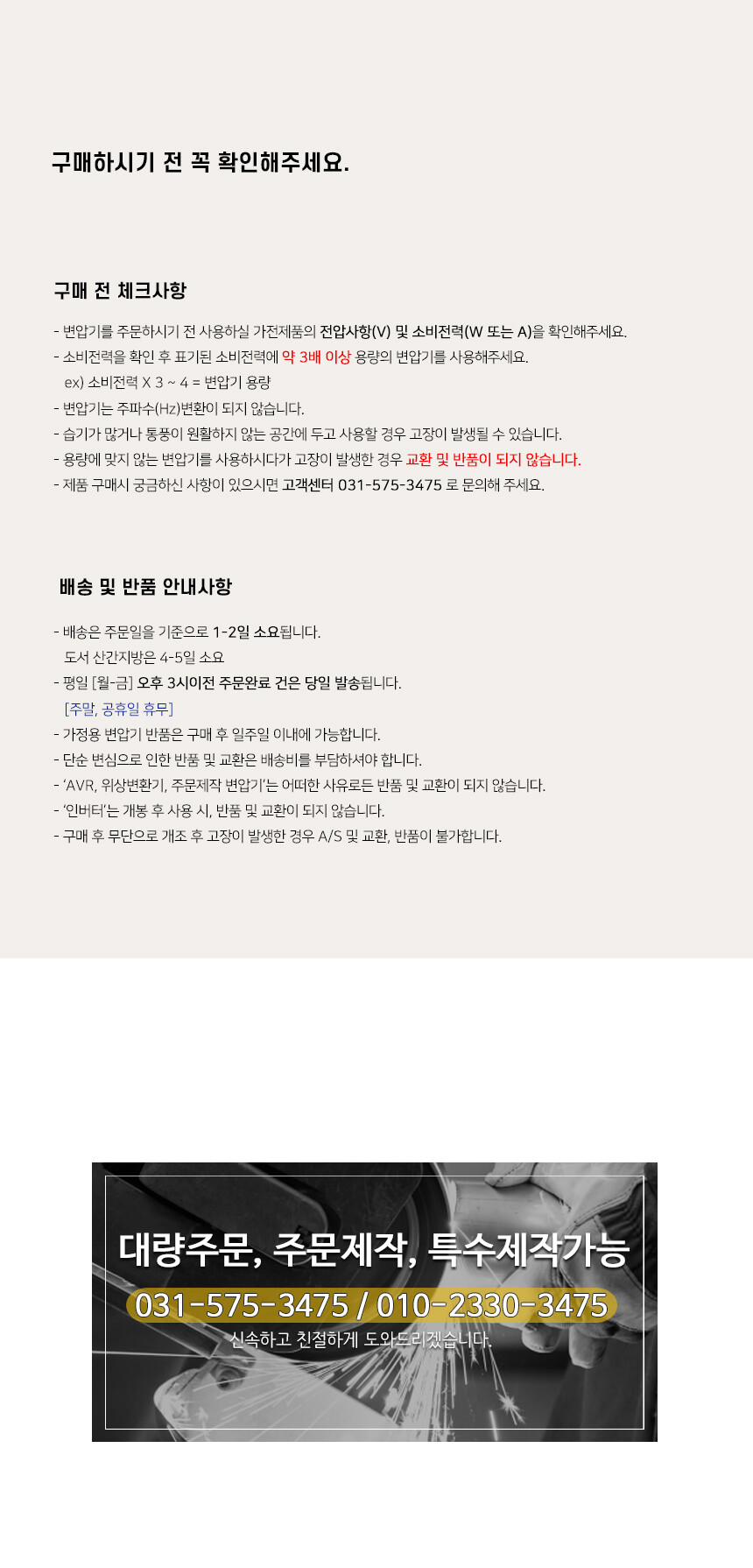 (모터전동기일 경우, 기동부하 전력의 최대치로 계산하여 용량을 선택하여 주십시오.)