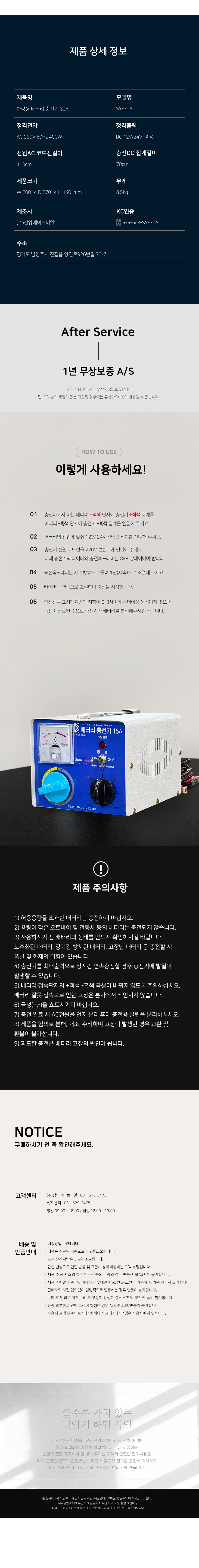 [차량용배터리충전기] 30A 밧데리충전기 12V/24V겸용