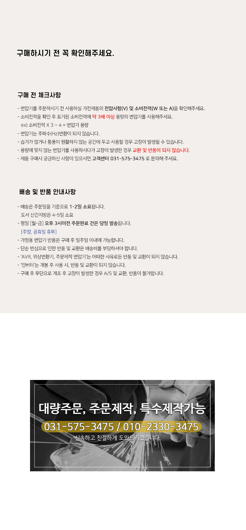 (모터전동기일 경우, 기동부하 전력의 최대치로 계산하여 용량을 선택하여 주십시오.)