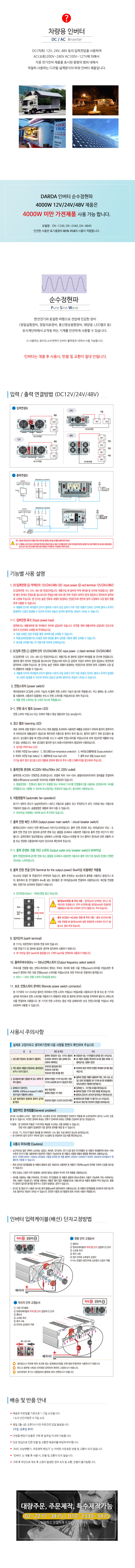 [차량용 인버터] 4000W DARDA 인버터 순수정현파 12V/24V/48V