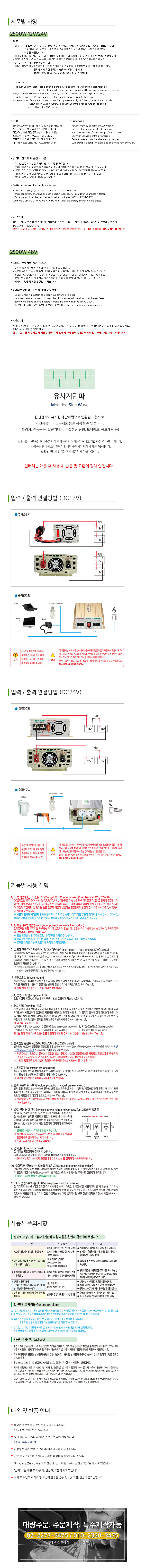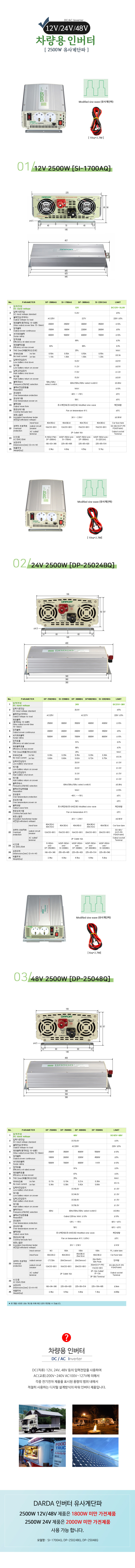 [차량용 인버터] 2500W DARDA 인버터 유사계단파 12V/24V/48V